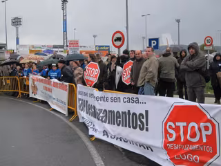 No obstante, cada vez que una persona se disponía a entrar en el recinto del congreso, los manifestantes aprovechaban para hacerles llegar sus demandas a base de consignas para reclamar la devolución del dinero atrapado en preferentes, en contra de los recortes en materia de sanidad, en reclamación de la unidad de hemodinámica en el Hospital de Lugo o en defensa del cercano Parque de Rosalía, entre otras reivindicaciones.