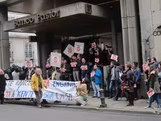 Varias decenas de personas, convocadas por la plataforma STOP Desahucios Compostela, han realizado este martes una ruta por tres sucursales del Banco Popular y una del Banco Pastor --que fue absorbido por el primero-- para reivindicar la concesión de la dación en pago para seis mujeres que viven en la comarca de Santiago.