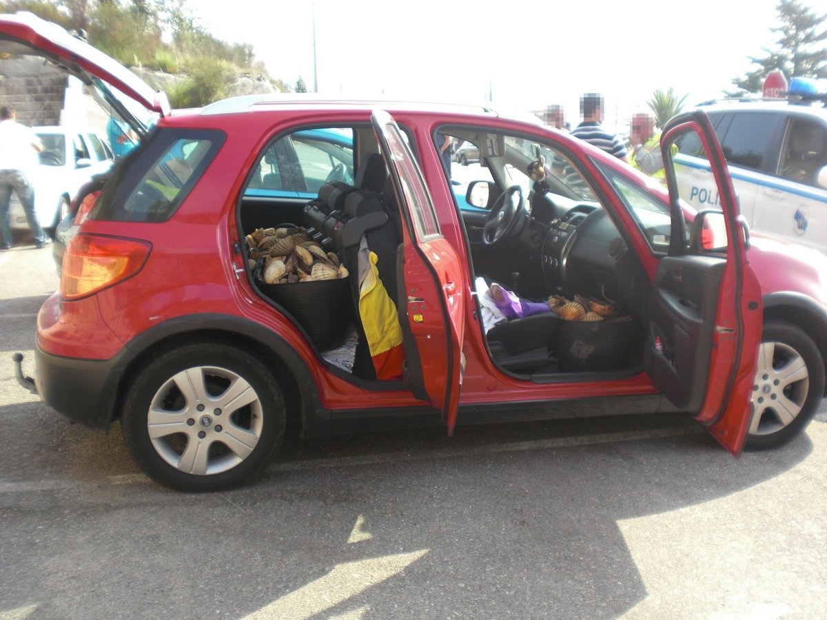 Durante el control identificaron a sus dos ocupantes y decomisaron los 11 sacos de vieira que transportaba el coche y que contenían 343 kilos de este molusco.