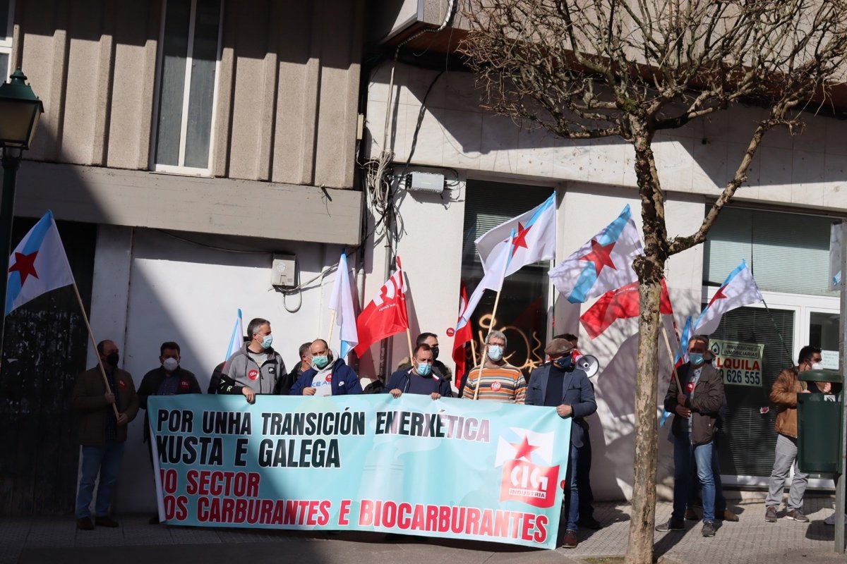En la concentración se han coreado consignas como 'Non hai transición sen inversión', 'É demolición, non é transición' o 'Transición Galega Xusta'. Respecto a esta última, el delegado de la CIG Armando Carril, ha recordado que en junio de 2021 ya solicitaron tanto a la Xunta como al Ministerio de Transición Ecológica "que tuviese en cuenta el sector gallego de carburantes y biocarburantes para poner en marcha un Plan galego de Transición Energética sin haber obtenido, a día de hoy, respuesta".