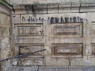Pintada en la fachada del monasterio de Celanova de las Mocidades Galeguistas, a 6 de marzo de 2026. - CELANOVA NA MEMORIA