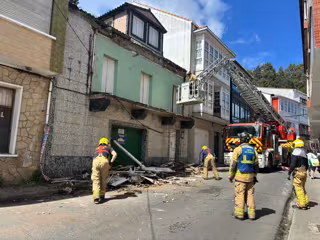Intervención de Bomberos de Ferrol tras el derrumbe de una galería parcial en una vivienda abandonada en el barrio de A Graña,a a 11 de abril de 2026. - EUROPA PRESS