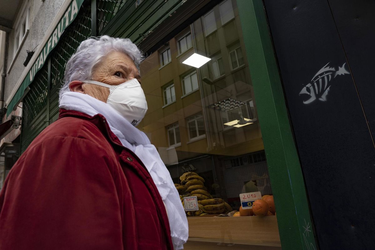 Archivo - Una mujer protegida con mascarilla se dirige a la entrada de un establecimiento alimenticio en A Coruña - M. Dylan - Europa Press - Archivo