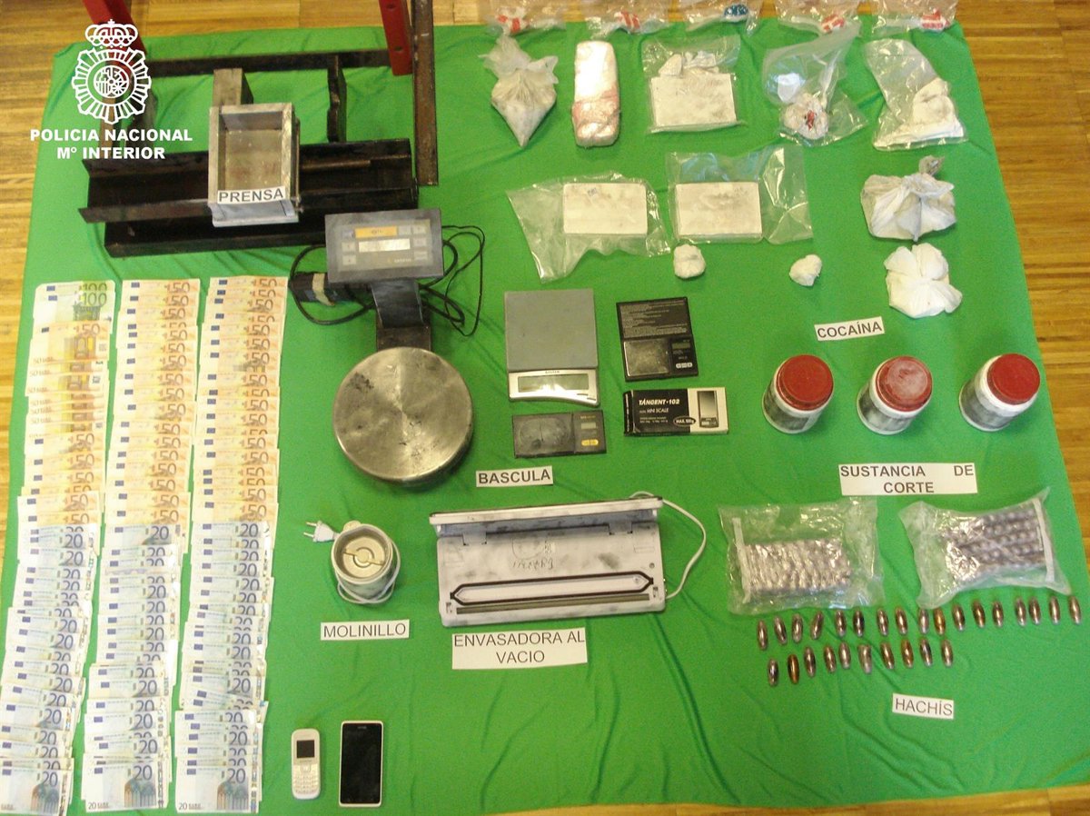 Por ello, procedieron a detener a los individuos en el momento en que accedían al garaje, tras lo que registraron el trastero y la vivienda, encontrando casi tres kilos de cocaína, kilo y medio de hachís, unos dos kilos de sustancia de corte, una envasadora, una prensa, dos básculas de precisión, algo más de 4.000 euros en efectivo, dos teléfonos móviles y efectos para preparar y distribuir droga.