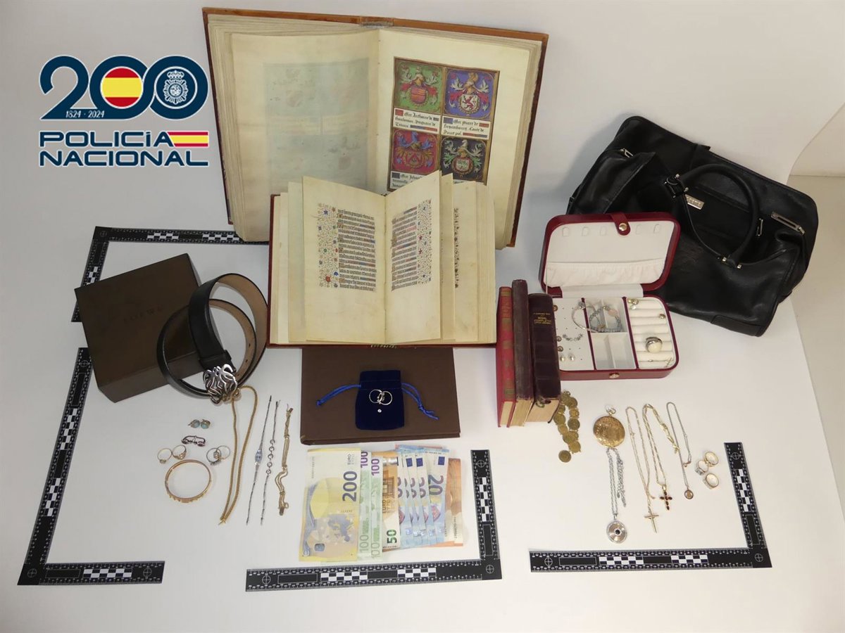 Además de las joyas destacan, entre los efectos sustraídos, dos libros, uno de ellos un facsímil, adquiridos hace muchos años por casi 4.000 euros cada uno y que, en la actualidad, habrían duplicado su valor.