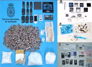Los agentes incautaron 1.290 gramos (6.898 dosis) de cocaína, 6.026 gramos de hachís, 1,3 gramos de marihuana, 1,1 gramos de MDA, 11 básculas de precisión, útiles para la manipulación de la droga y sustancias de corte (1.900 gramos), 26 teléfonos móviles y 10.250 euros.