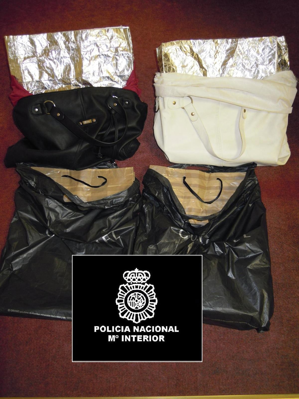 Ambas mujeres portaban sendos bolsos y en su interior se encontraban numerosas prendas de vestir, todas ellas con sus respectivos dispositivos de alarma. Los policías comprobaron que los bolsos estaban forrados en su interior de un material de aluminio con el fin de inutilizar las alarmas de las prendas.