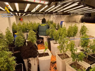 Además, se hallaron 10 kilos de hachís, 100 kilos de cogollos y 7.300 euros en efectivo, así como lámparas y material para plantaciones indoor.