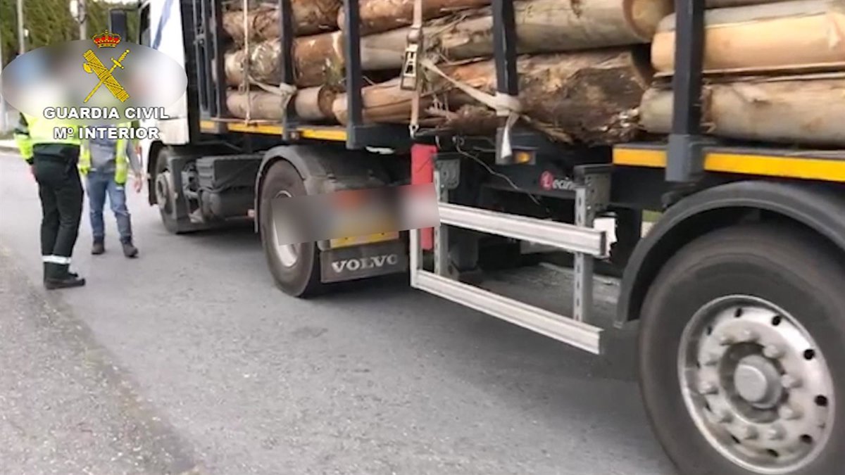 Según ha relatado el Instituto Armado, la actuación tuvo lugar cuando agentes del Sector de Tráfico de Galicia observaron como un vehículo que transportaba madera para la producción de celulosa, necesaria para el suministro de material higiénico, se paraba antes del punto.
