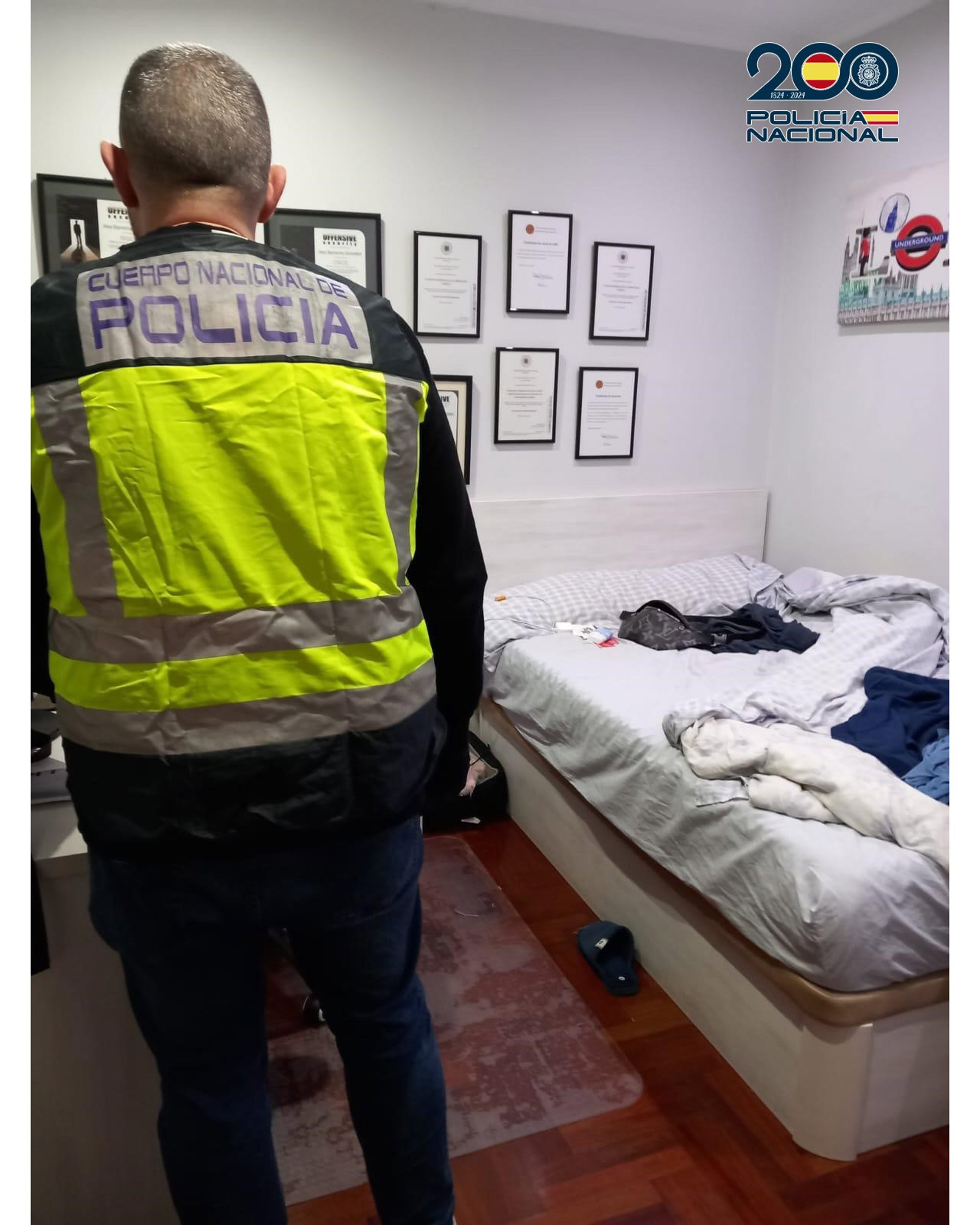 Por estos hechos se solicitó mandamiento judicial de entrada y registro en el domicilio del ahora detenido, con motivo del cual fueron intervenidos diversos efectos relacionados con la investigación en curso.