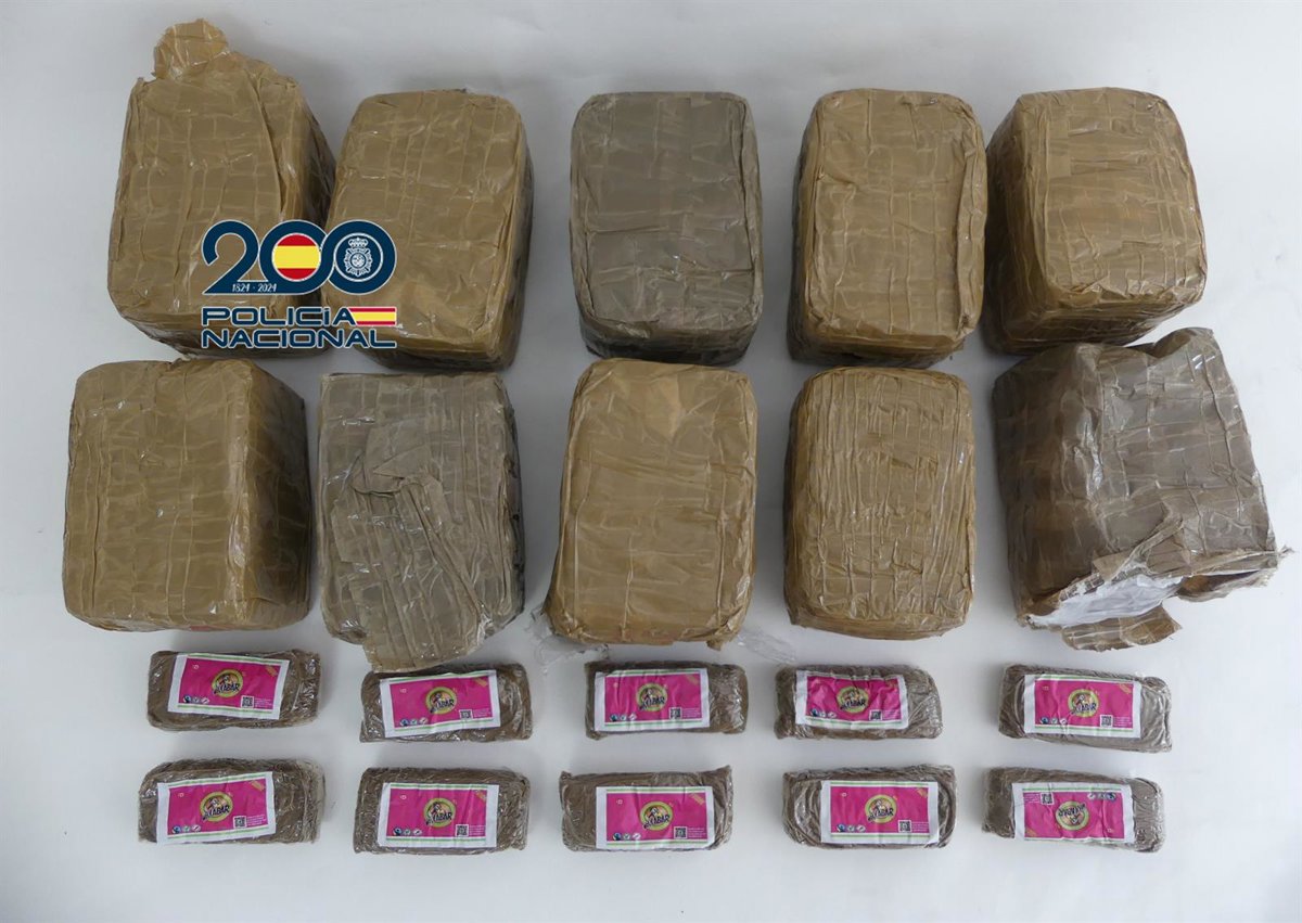 Una vez identificado y detenido, los agentes policiales de la comisaría de Marín comprobaron que en el interior de la caja había diez kilos de hachís distribuidos en diez paquetes de un kilo cada uno.