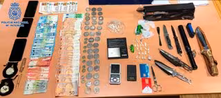 En los registros, la Policía se incautó de 100 dosis de cocaína, 30 dosis de heroína, 2.900 euros en efectivo, 5 armas blancas, una defensa extensible, varias básculas, 17 décimos de lotería, 36 monedas de plata, diversas joyas y relojes.