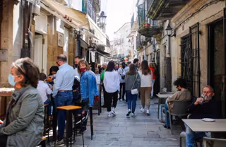 Archivo - Varias personas en una calle de terrazas de Baiona, en Vigo, Pontevedra, Galicia (España), a 28 de marzo de 2021. El subcomité clínico mantiene el nivel alto de restricciones en el concello de Baiona, lo que conlleva que la hostelería solo pue - Europa Press - Archivo