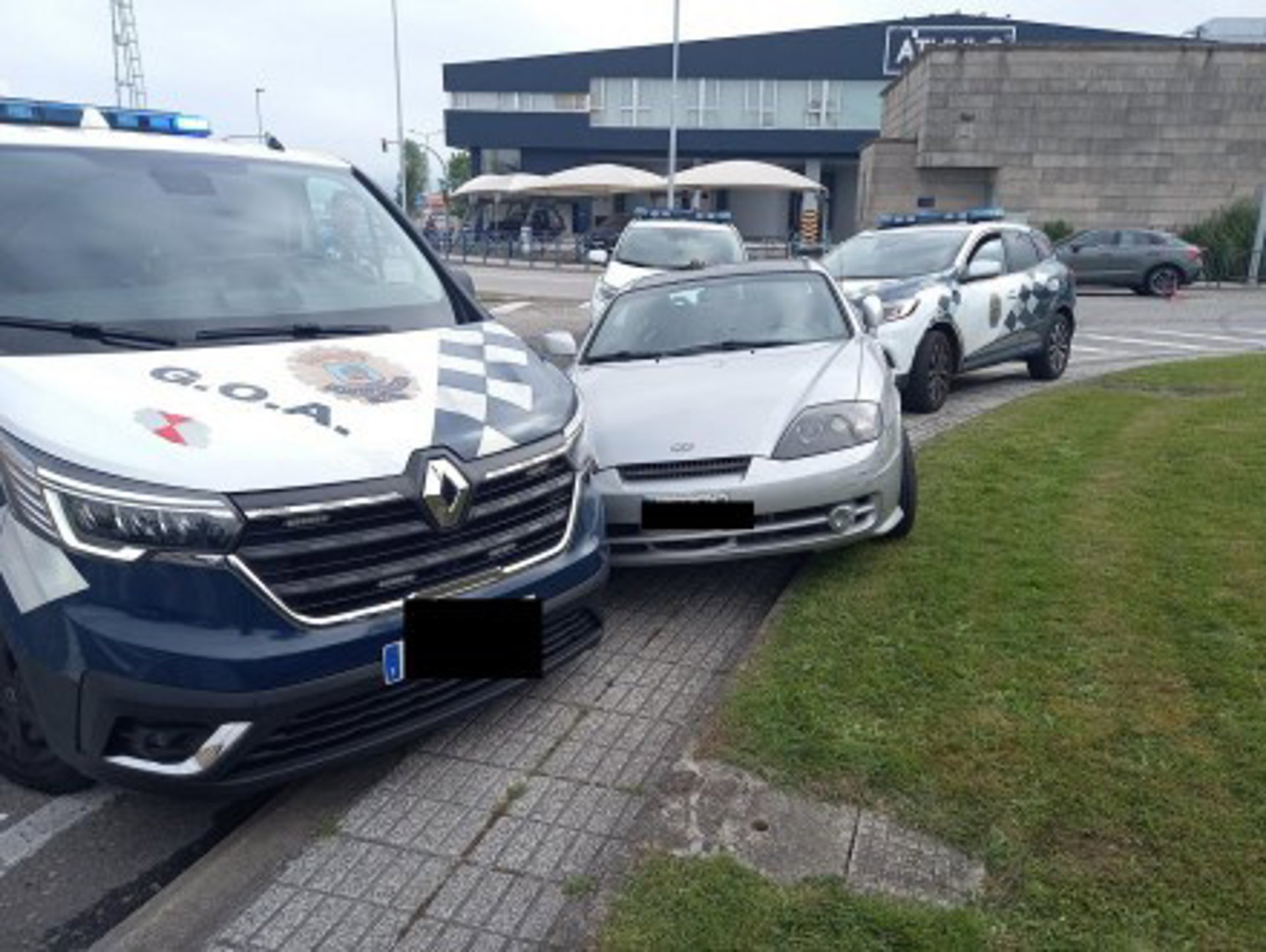 Finalmente fue interceptado en la rotonda de la Industria Conservera, en Bouzas, siendo identificado y comprobando que tenía en vigor una pérdida de vigencia de su carné. Además, se le realizó la prueba de alcohol y de otras drogas, dando resultado positivo en cocaína y 0,40 miligramos de alcohol por litro de aire espirado.