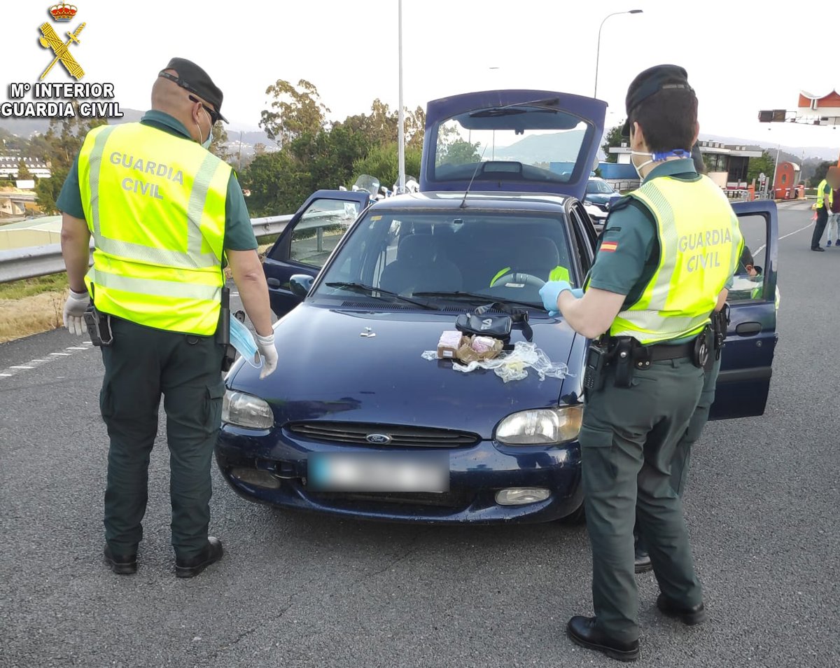Detenidos con 700 gramos de hachís los dos ocupantes de un coche interceptado en un control en el peaje de la AP-9 en Vilaboa (Pontevedra). - GUARDIA CIVIL