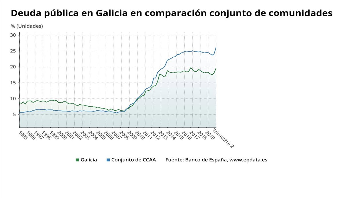 Deuda pública de Galicia en comparación con el conjunto de las comunidades - EPDATA