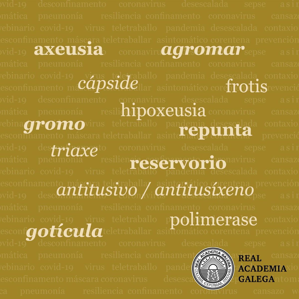 La Real Academia Galega ya incorporó el pasado mes de mayo a su diccionario otras voces relacionadas con la pandemia como 'covid-19', 'coronavirus', 'desconfinamento' o 'desescalada'.