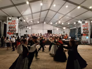La Unión Musical de Valladares al fondo, con un grupo de jóvenes bailando al sonido de una muiñeira. - PEDRO DAVILA-EUROPA PRESS