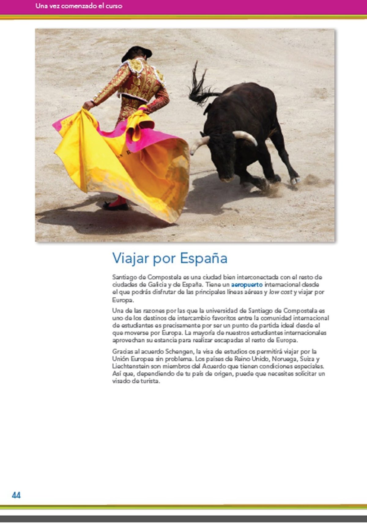 Así, han indicado que en la página 44 del folleto editado para el curso 2013-2014 hay una imagen de una corrida de todos para ilustrar "las conexiones de la capital gallega con el resto del Estado", lo que han señalado como un "muy desafortunado gesto en una publicación que consultarán cientos de estudiantes de diferentes países".