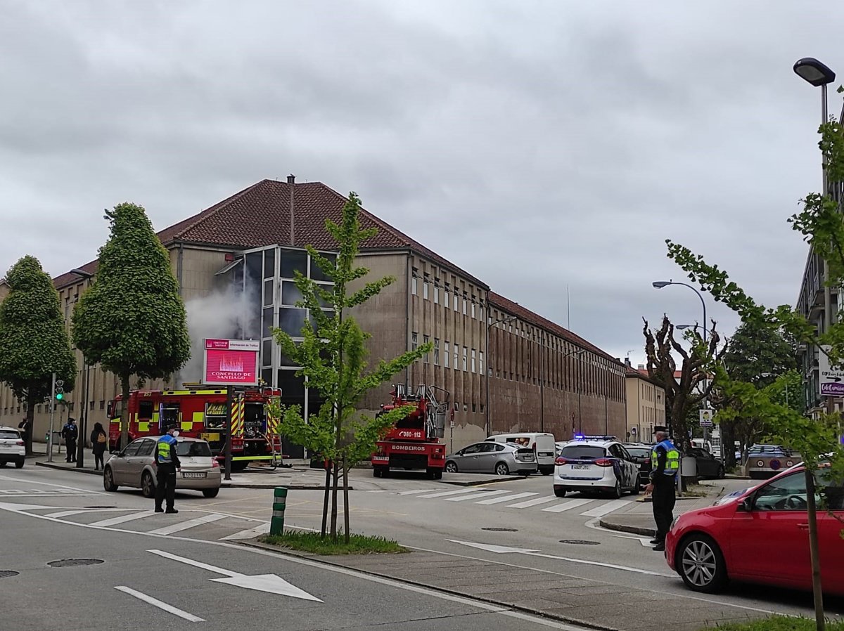 Dos personas han sido desalojadas ilesas, aunque "muy asustadas", a raíz del incendio registrado este viernes en las oficinas municipales de recaudación ubicadas en un edificio de la Rúa Galeras, en Santiago de Compostela.