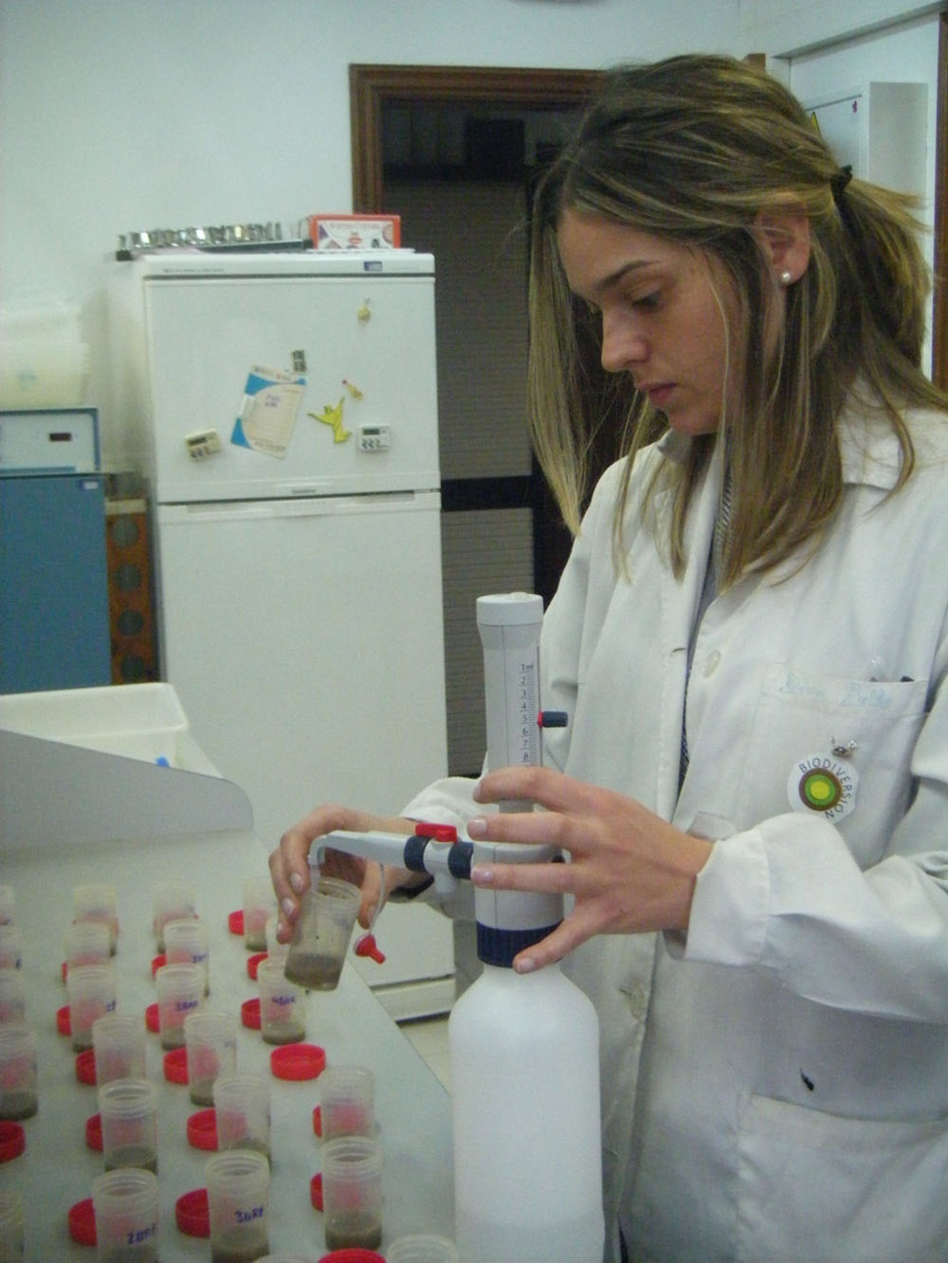 En 2008, Diana Bello Currás (Carballo, 1980) se incorporó con una beca predoctoral del CSIC al departamento de Bioquímica del Suelo del IIAG para realizar su tesis acerca del efecto sobre el funcionamiento del suelo de dos compuestos seleccionados entre los contaminantes indicados en el Real Decreto 9/2005: el 2,4-diclorofenol y el 2,4,5-triclorofenol.