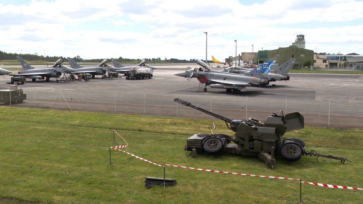 Por parte del Ejército del Aire y del Espacio, participan seis aviones como este en misión 'Quick Reaction Alert' (QRA), es decir, prevenidos para salir en cualquier momento. Por ello, el Aeródromo Militar de Santiago acoge esta semana a más de 80 militares de la unidad albaceteña, entre tripulaciones y personal de mantenimiento y de apoyo.