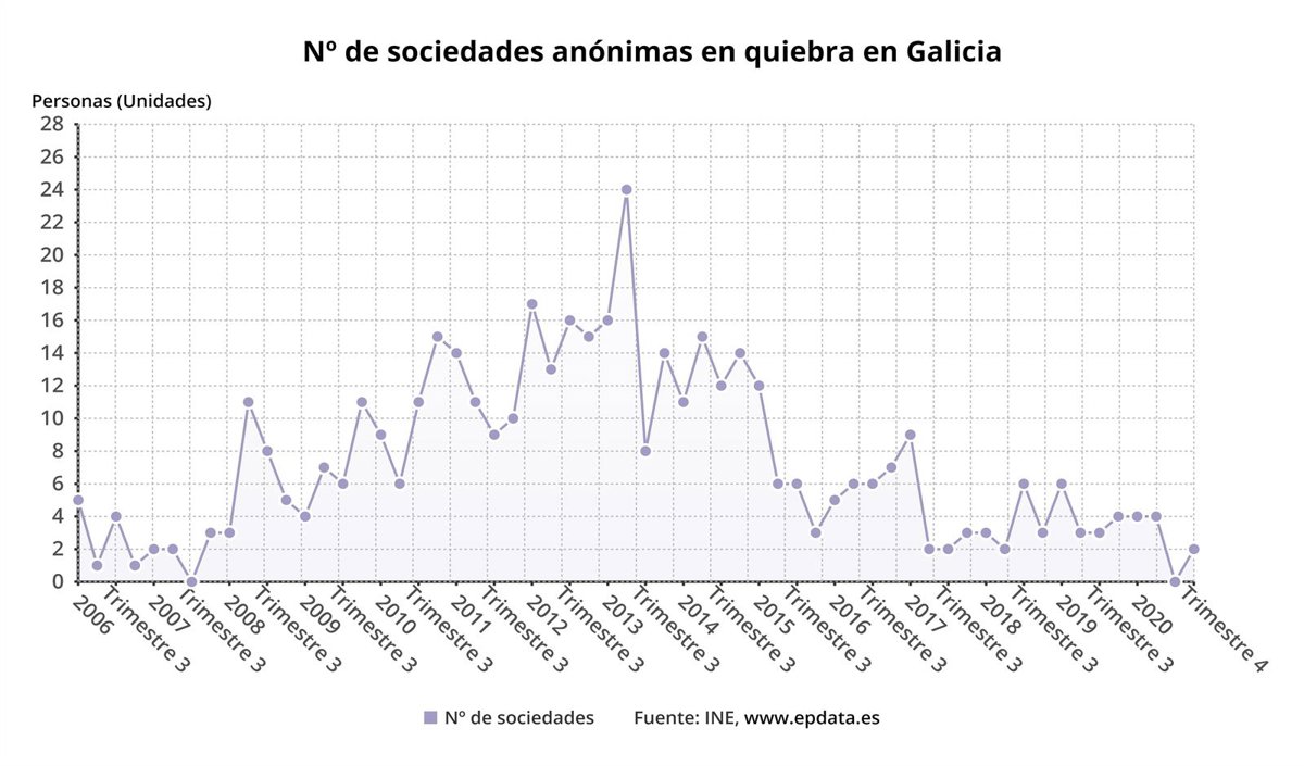 Las familias y empresas que se declararon en concurso de acreedores (suspensión de pagos y quiebras) ante la imposibilidad de afrontar sus pagos y deudas sumaron 312 en 2020 en Galicia, cifra un 9,57% inferior a la de 2019. No obstante, en el último trimestre del año pasado, el número de deudores concursados aumentó un 11,11% en relación al mismo trimestre del año anterior.