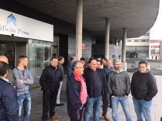 Representantes sindicales y trabajadores de auxiliares de la central de As Pontes, a la salida de una protesta en las oficinas de Endesa - CIG