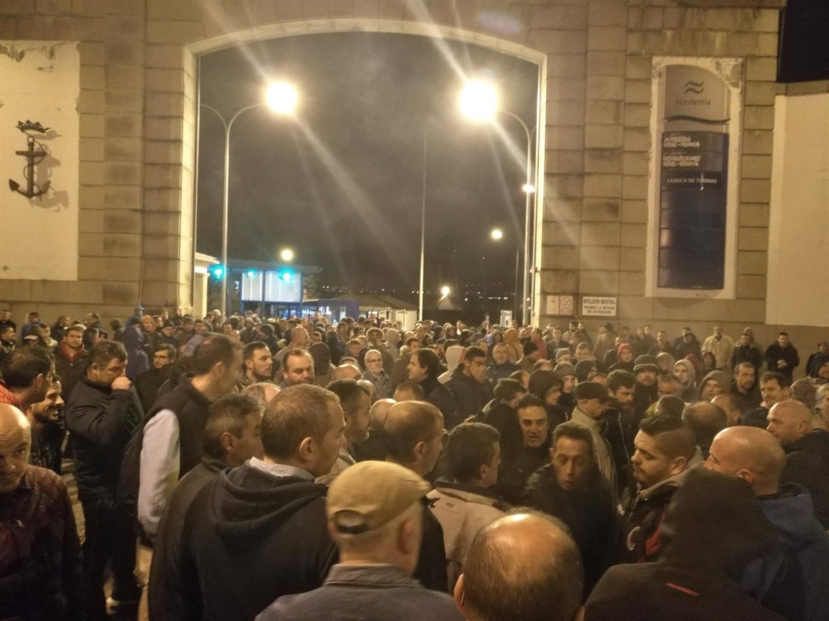 Trabajadores de las empresas auxiliares de Navantia partidarios de continuar con la huelga indefinida que mantiene la CIG desde el pasado 5 de octubre y operarios contrarios a esta medida han protagonizado varios enfrentamientos verbales subidos de tono, sobre las 7,00 horas de este lunes ante la puerta principal de la factoría en Ferrol, por el diferente parecer en cómo abordar este conflicto laboral.