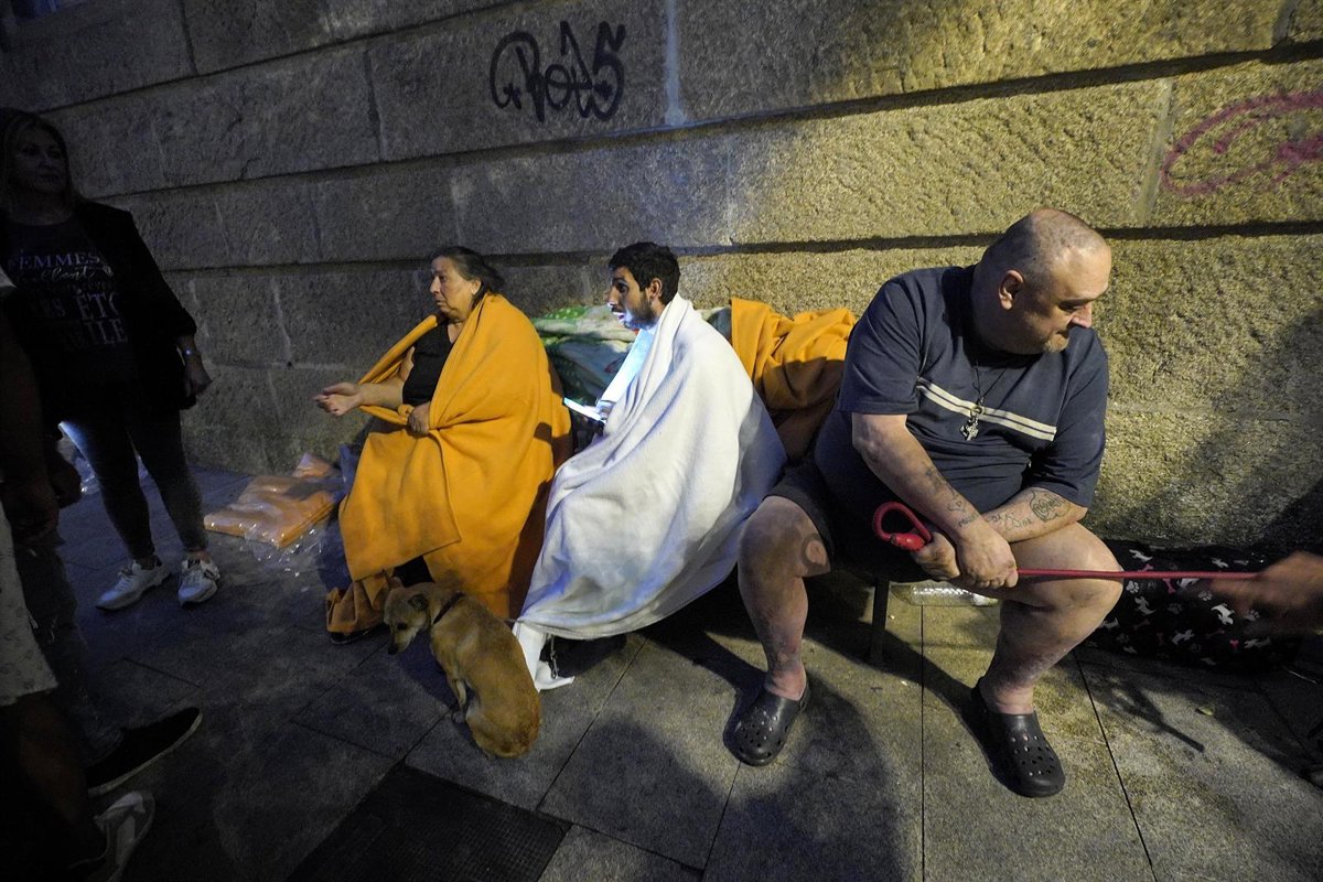 Tres vecinos del edificio donde se ha producido el fuego, tras ser desalojados, en la calle Alfonso X el Sabio de Vigo, a 11 de octubre de 2023, en Vigo, Pontevedra, Galicia (España). - Javier Vázquez - Europa Press