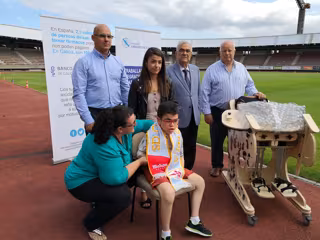 La Sociedad Deportiva Compostela, Fundación Amigos de Galicia y Banco Farmacéutico de Galicia han entregado un bipedestador para Jonatan, un niño de Santiago con Síndrome de Hunter.