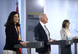 La directora del Instituto de Salud Carlos III, Raquel Yotti (1i), el secretario general del Ministerio de Sanidad, Faustino Blanco (2i) y la directora del Centro Nacional de Epidemiología, Marina Pollán (3i), presentan las conclusiones del estudio. - Óscar Cañas - Europa Press
