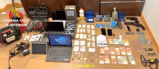Entre el material intervenido, 63,50 gramos de cocaína, 4,93 gramos de heroína, 6,30 gramos de hachís, 66,17 gramos de marihuana, más de 200 pastillas utilizadas para el corte de la sustancia, 205 euros en efectivo, dos machetes, un revólver de aire comprimido, una pistola semiautomática HK de aire comprimido y diversos efectos "de dudosa procedencia", en concreto, joyas, monedas antiguas, ordenadores portátiles, una tablet, un maletín de herramientas, piezas decorativas y una guitarra eléctrica.