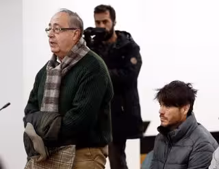 El exgerente del Club de Fútbol Osasuna, Ángel Vizcay (izq); y el exdirector de la fundación Osasuna, Diego Maquirriain (dech), durante la primera jornada del juicio por supuestos amaños de partidos en la temporada 2013-2014, en Pamplona /Navarra - Pool