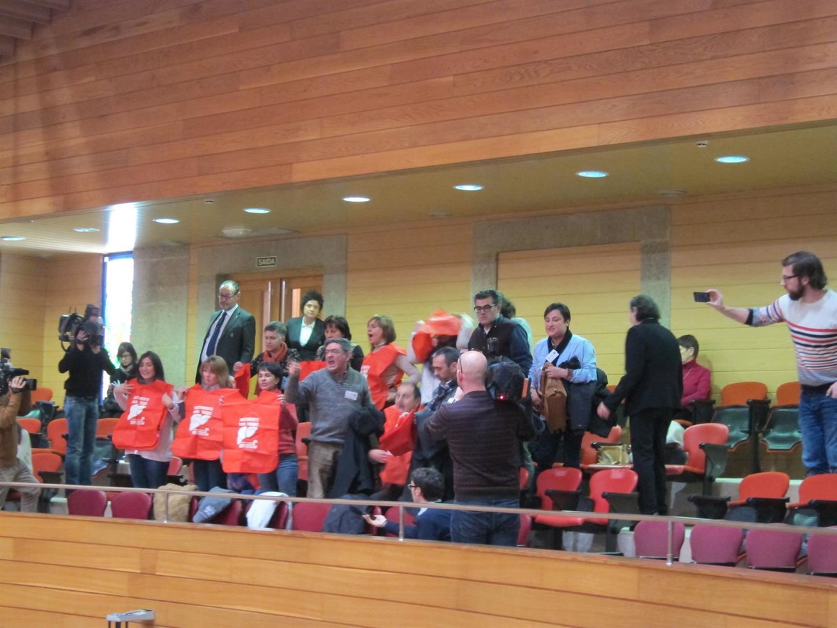 Su protesta se produjo tras la votación de una proposición conjunta de AGE y BNG encaminada a reclamar que el acceso al medicamento se regule con criterios médicos y que contó con el apoyo de toda la oposición y el rechazo del PPdeG.