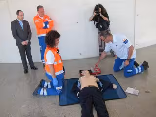 Por su parte, el director del 061 ha avisado de que, ante una situación de parada cardiorespiratoria, "además de utilizar el desfibrilador semiautomático hay que llamar al 061 y seguir las indicaciones de la central hasta que lleguen las unidades".