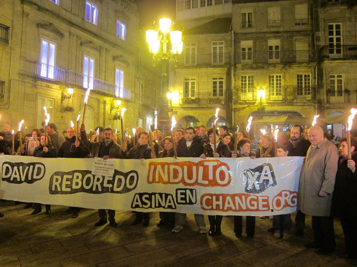 Durante el acto, en el que los asistentes portaron antorchas para "iluminar la Constitución y al Consejo de Ministros", se dio lectura a un manifiesto en el que se insiste en solicitar la medida de gracia para David Reboredo, teniendo en cuenta que "ya fue indultado por la opinión pública y por los plenos del Ayuntamiento de Vigo, la entidad menor de Bembrive y el Parlamento de Galicia", en alusión a los apoyos recibidos.