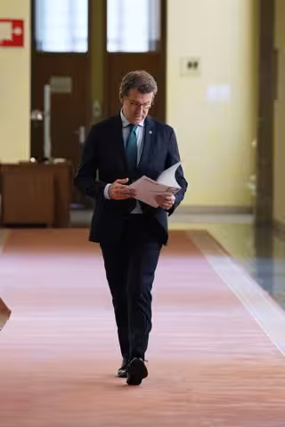 El presidente de la Xunta de Galicia, Alberto Núñez Feijóo, a su llegada para entregar una carta de renuncia ante el jefe del Legislativo gallego, en el Pazo de Raxoi, a 29 de abril de 2022 - Álvaro Ballesteros - Europa Press
