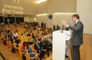 Núñez Feijóo ha participado en Santiago en la inauguración del foro Conecta Fiction, el primer encuentro dedicado a la coproducción de ficción televisiva en el que participan una treintena de productoras y canales de televisión procedentes de Europa, Latinoamérica y Estados Unidos.