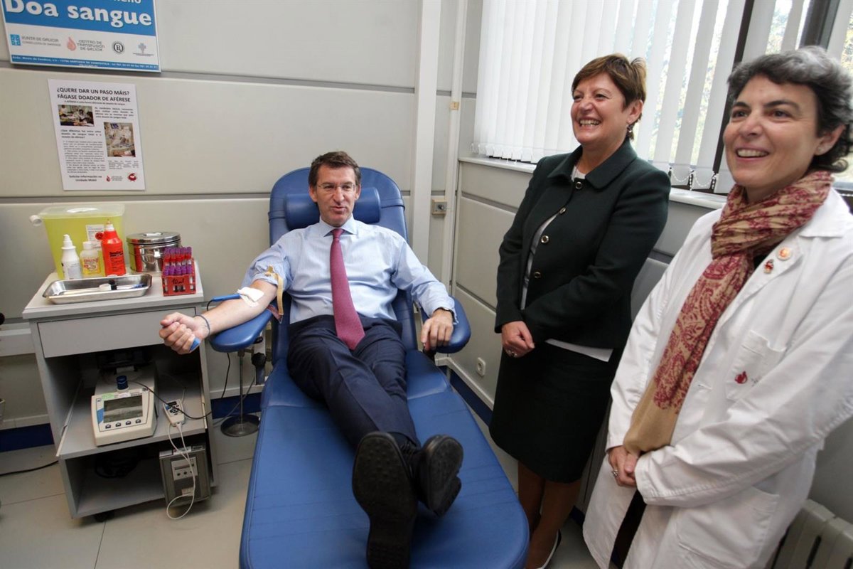 Núñez Feijóo ha acudido a donar sangre a las instalaciones del CTG en el Monte da Condesa, en una visita en la que estuvo acompañado por la conselleira de Sanidade, Rocío Mosquera, y la directora del centro, María Inmaculada Rodríguez Calvo.