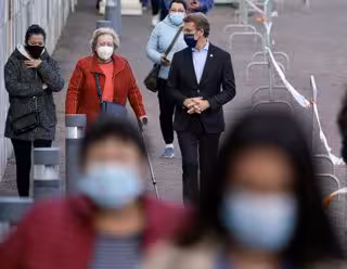Poco después de las 19,45 horas, conforme la cita del Servizo Galego de Saúde, el presidente gallego ha llegado a la cola de la Cidade da Cultura, donde está teniendo lugar la vacunación para su grupo de edad (tiene 59, pero cumplirá 60 en septiembre).