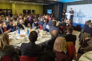 En el desayuno, el presidente se ha declarado "orgulloso" de las infraestructuras impulsadas por su Ejecutivo en Pontevedra, sobre todo en los años de mayor impacto de la crisis económica y cuando ahora se vuelve a percibir "sintomatología de noticias pesimistas" en la economía.