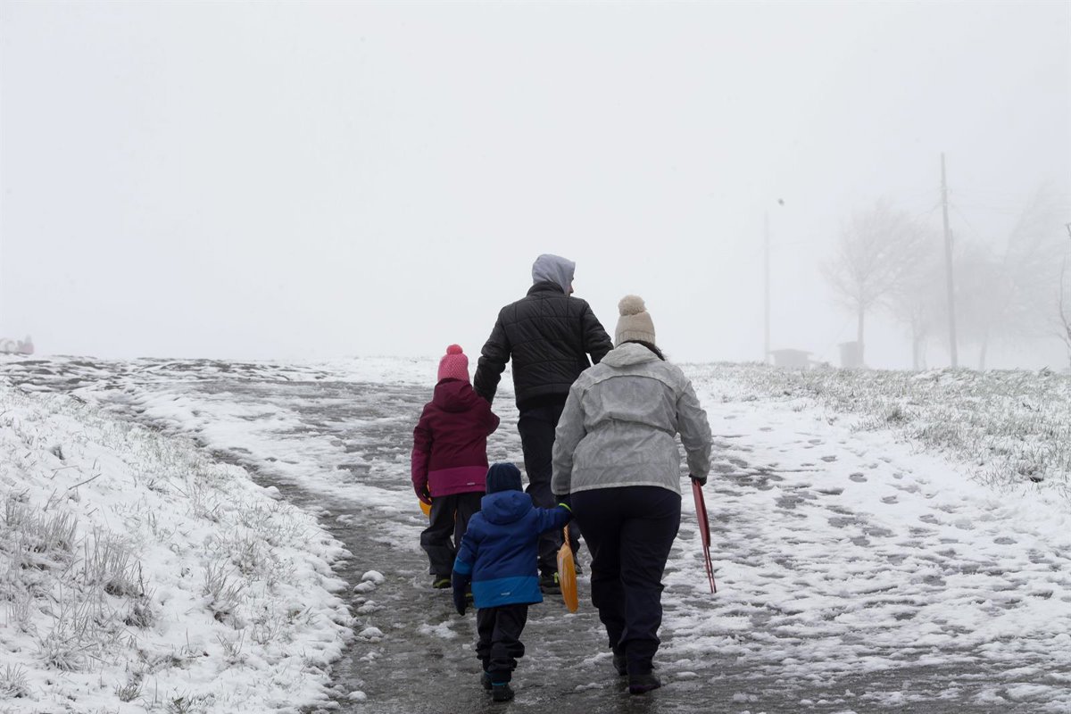 Una familia llega a la parroquia de O Cebreiro para disfrutar de la nieve, a 15 de enero de 2023, en Pedrafita do Cebreiro. - Carlos Castro - Europa Press