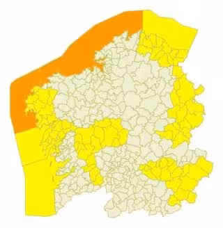 Las precipitaciones caerán desde la medianoche en A Coruña hasta el mediodía con más de 40 litros/metros cuadrados previstos. En el interior de Pontevedra estas lluvias se prevé que se inicien a las 3,00 y que finalicen sobre las 15,00, con una cuantía estimada similar a las de A Coruña.