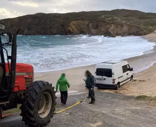 Finalmente, fue una tractor propiedad del Ayuntamiento de Valdoviño el encargado de sacar de la arena a la furgoneta, personándose en la zona un buen número de curiosos y también un edil de esta localidad y agentes de la Guardia Civil.