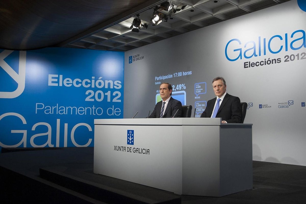 En las cuatro circunscripciones de Galicia, con el 61,56 por ciento de los votos escrutados, el PP revalida su mayoría absoluta en la Comunidad y la aumenta de los 38 a los 41 escaños, mientras que el PSdeG se desploma de 25 a 18 diputados.