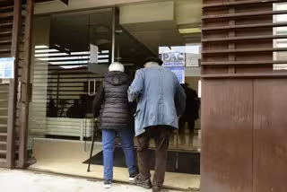 Comienza la campaña de vacunación simultánea contra la gripe y la tercera dosis de la Covid en mayores de 80 años. Dos personas acuden a un centro sanitario en Ourense a vacunarse. - ROSA VEIGA