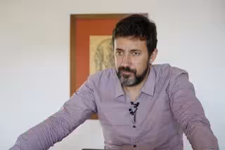 El portavoz de Galicia en Común-Anova Mareas, Antón Gómez-Reino, en rueda de prensa. - GALICIA EN COMÚN-ANOVA MAREAS