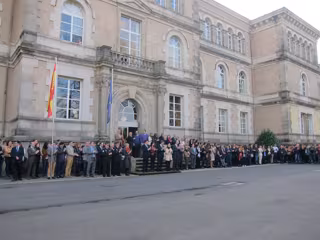 Los actos de repulsa se han celebrado en los edificios de la Xunta de Galicia, multitud de ayuntamientos, la Delegación del Gobierno, el Parlamento Gallego, los centros universitarios, los juzgados de Santiago, los sindicatos o los establecimientos de Paradores de Turismo, entre otros emplazamientos.