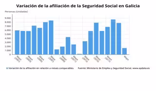 Afiliados a la Seguridad Social en Galicia en mayo - EPDATA